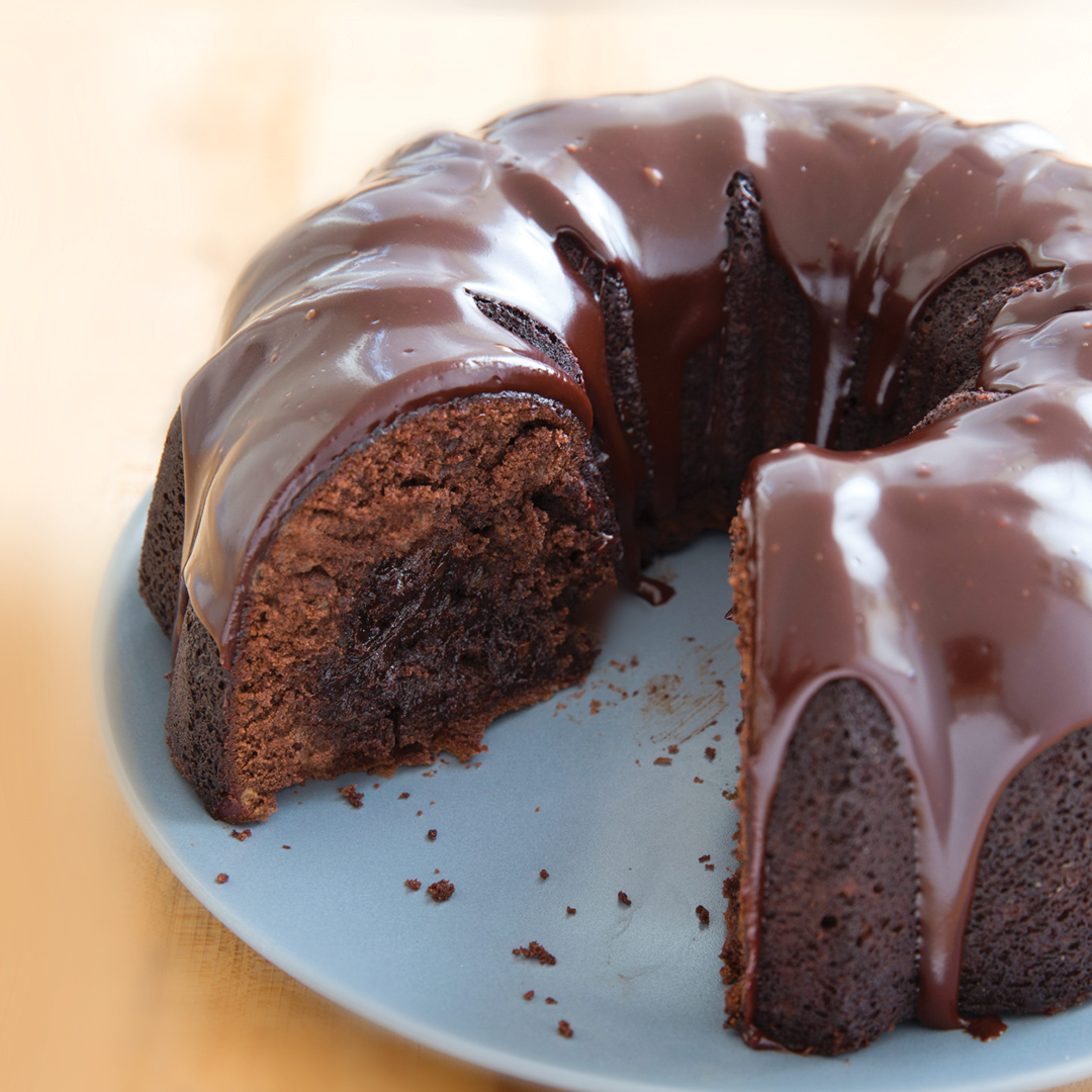 Preheat oven to 350°F. Grease and flour a 10 or 12-cup bundt pan. Melt the chocolate in a double boiler or in the microwave. Remove from heat.