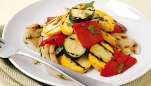Heat your grill pan over medium-high heat until a drop of water sprinkled on it sizzles and disappears. Lower flame to medium and spread the vegetables in the pan. Cook 7 to 8 Minutes or until black grill marks appear on the vegetables tossing once during cooking.