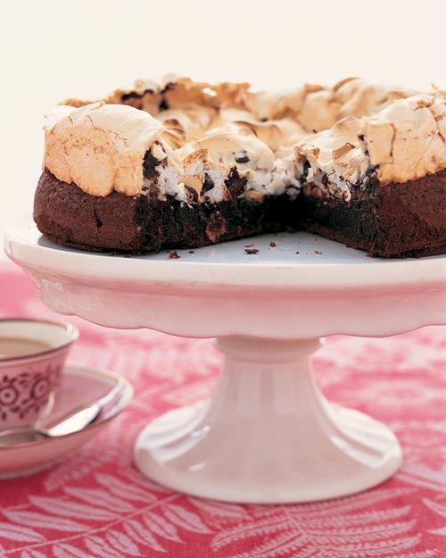 Remove cake from oven. Using an offset spatula, spread meringue mixture on top of cake and return to oven. Bake until meringue is crisp and lightly browned, about 25 to 30 Minutes. Remove from oven and let cool on wire rack for 10 Minutes. Loosen edges with spatula and release sides of pan. Let cool about 30 minutes before serving.
