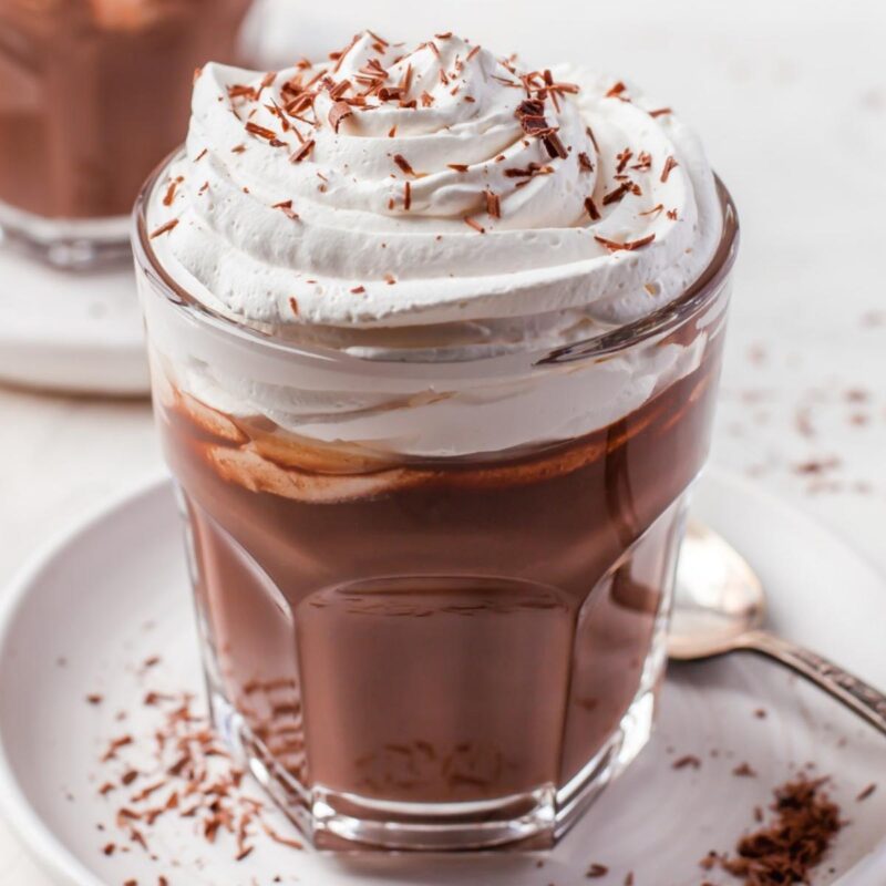 Pour into small mugs or cups and top with whipped cream swirls and a cinnamon stick.