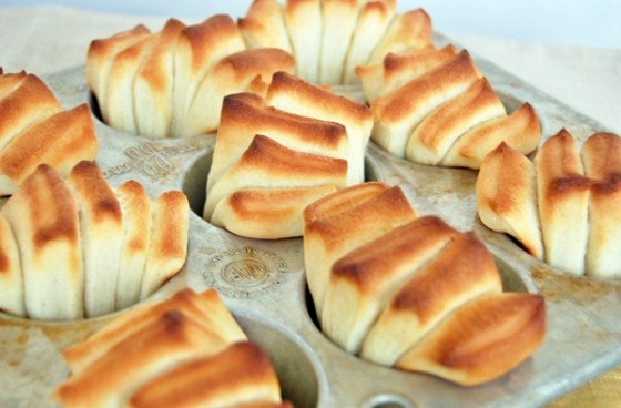 If you prefer, dinner rolls can be knots, small braids or basic rounds balls. You can also press three small balls of dough into the muffin cup to form a clover-leaf roll.