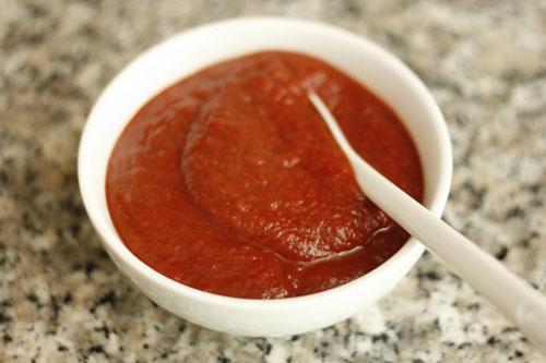 Using a hand blender, puree ketchup until smooth. If ketchup is pale red and you would prefer it to be darker, add a few tablespoons of beet juice to the mixture. Chill, at least 2 hours to allow flavors to develop.