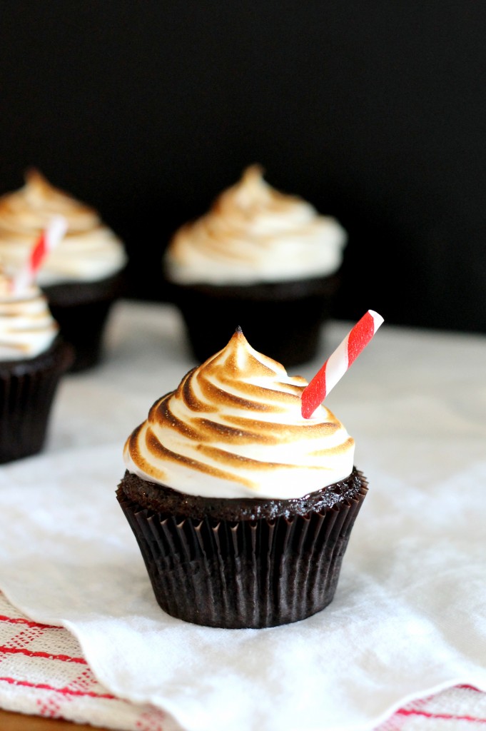Increase oven temperature to 450 degrees F. Pipe or spread marshmallow frosting onto tops of cupcakes. Place frosted cupcakes on a large baking sheet. Bake 5 Minutes or until frosting is lightly browned. Alternately, use a cook's torch to brown the marshmallow frosting.