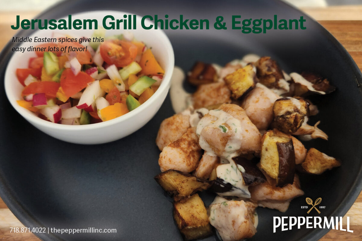 10Remove chicken and eggplant from oven. Divide among 4 plates, drizzle with tchina. Serve with Israeli Salad.
