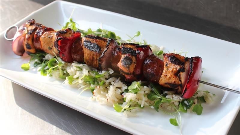 Grill the skewers, turning occasionally, until chicken is cooked through, about 15 to 20 Minutes. Serve skewers with Mediterranean couscous or rice.