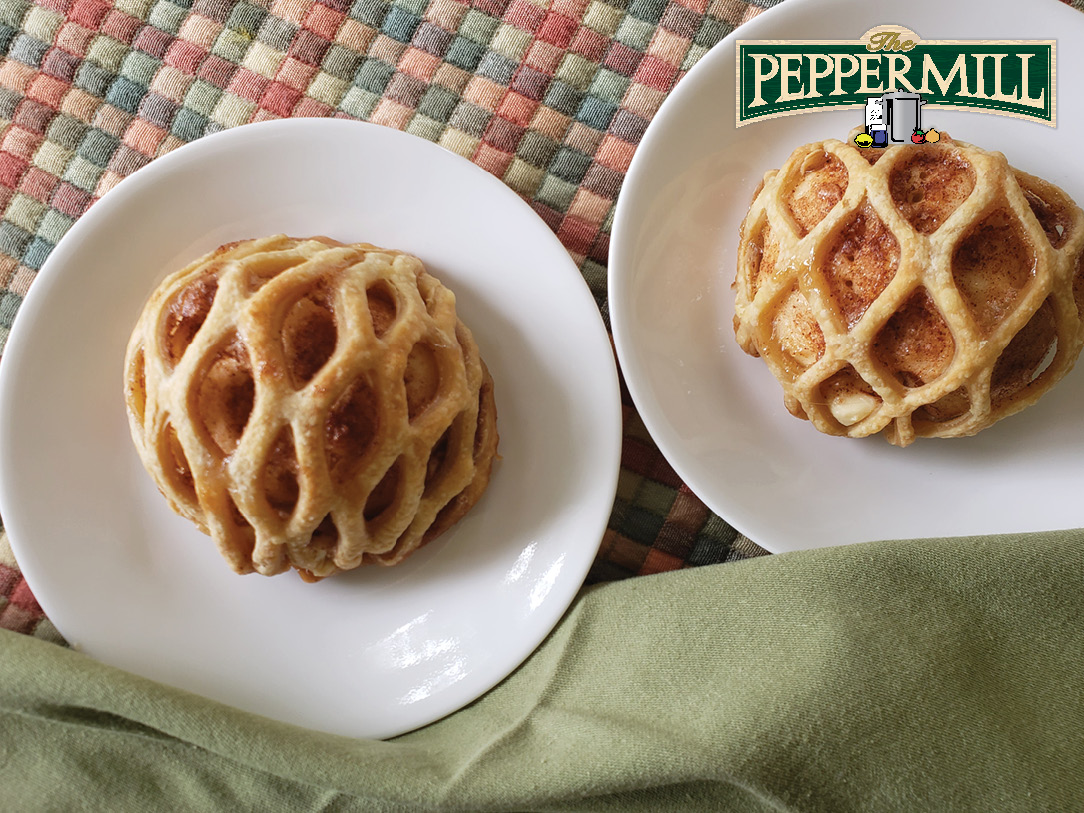 Place 1 apple half, round side down, on each pastry square. Put 1 heaping tablespoon bavarian cream in the hollow center of each apple. Gently stretch the puff pastry lattice over the apple to completely enclose the cream. Dab with water if needed to keep pastry sealed.