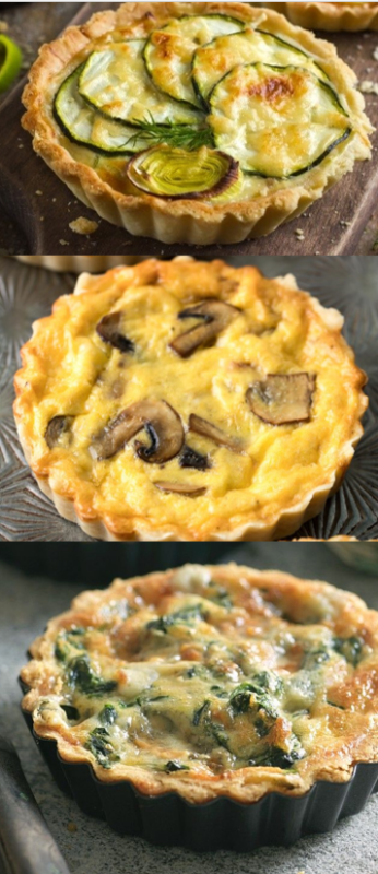 The filling recipe is a basic quiche mixture to which a variety of vegetables can be added. We offer different suggestions. You can make your mini quiches all the same or divide the filling and add different vegetables to each part. Divide vegetables amounts accordingly.