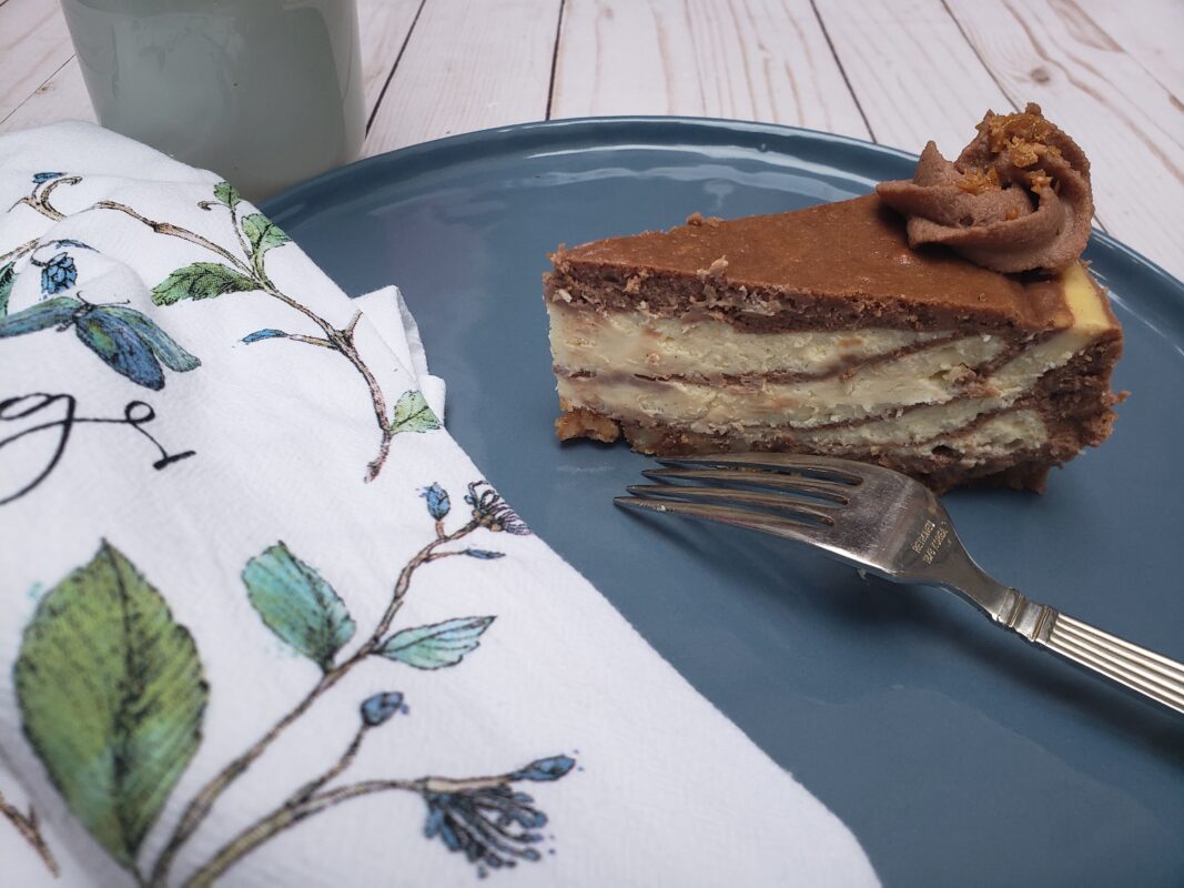 Chocolate hazelnut cream and liquor add deep rich flavor to this pretty cheesecake.