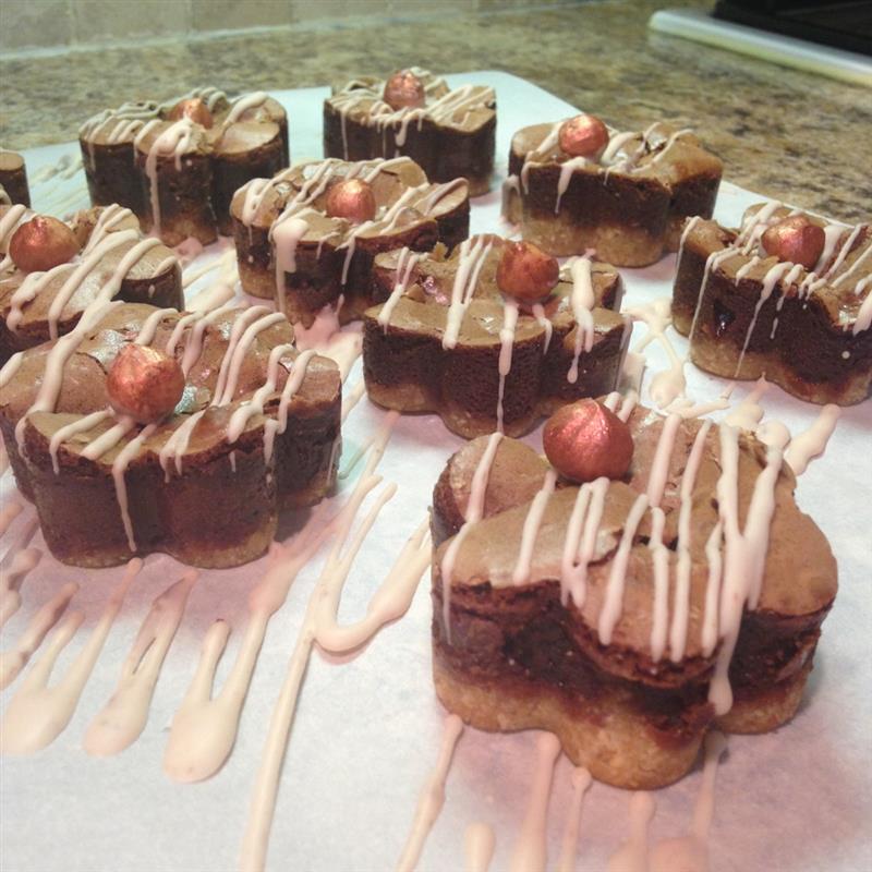 Melt chocolate and margarine in a microwave or double boiler. Stir until smooth. Remove from heat and let cool. Whisk in sugar, vanilla and eggs until batter is smooth. Stir in flour, nougat powder and salt until just combined. Fill a large pastry bag with brownie batter. Squeeze batter to fill each cavity of the silicone pan ¾ full. Place filled pan on a cookie sheet. Bake for 22 to 25 Minutes until top is dull and slightly cracked. Remove from oven and place in freezer. Remove from pans when frozen.