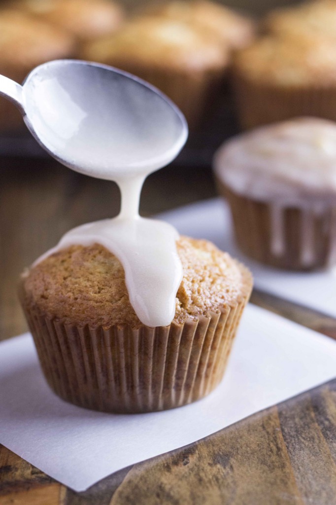 Combine confectioners’ sugar with pineapple juice, stirring in a little at a time until you get a thick drizzling consistency. Drizzle over cupcakes. Serve immediately or wrap well and freeze.