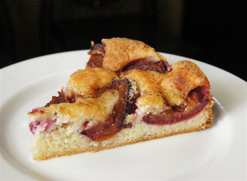 Spoon the batter into an ungreased 9-inch springform pan or 9-inch quiche dish. Arrange the plum halves or slices on the batter. Mix the cinnamon with the remaining sugar and sprinkle over the top.