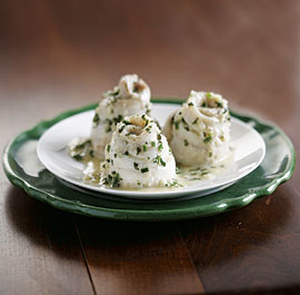 Slice each fish fillet in half lengthwise to make 12 strips. Combine garlic, salt and pepper. Sprinkle spice mixture evenly over fish. Sprinkle with 2 tablespoons chopped parsley. Roll each strip into a coil starting at the fatter end and keeping the cut edge aligned. Secure with a toothpick.