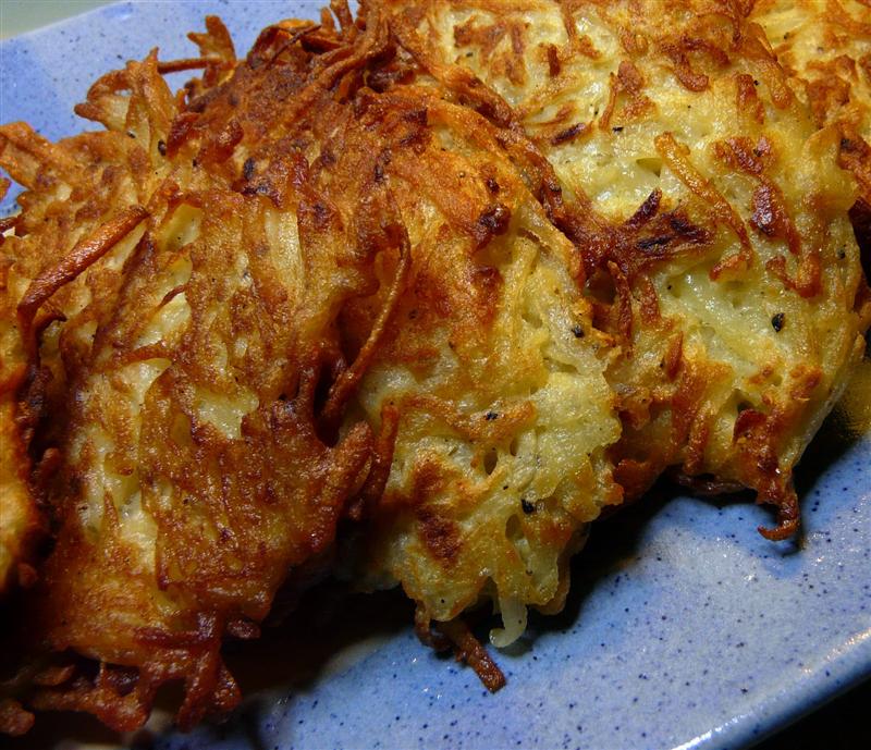 Peel potatoes and grate using a large-hole grater.
