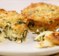 Place a generous 1/2 cup of the potato mixture into each muffin cup, packing the mixture firmly. Bake the latkes until lightly browned and firm, 50 to 60 Minutes.