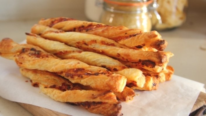 Cheese straws are made with purchased puff pastry so they can be ready at a moment’s notice. You can even prepare them in advance and freeze raw; then bake just before serving.