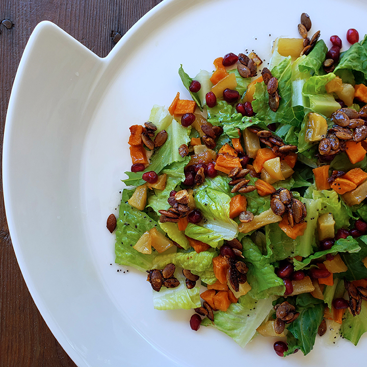 Roasted sweet potatoes and pears give this salad deep delicious flavor.