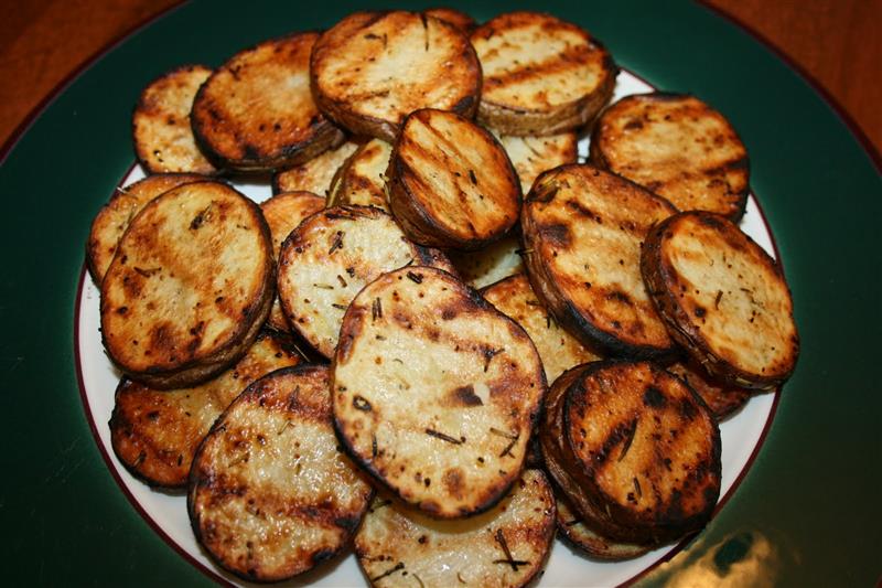 Heat your grill pan over medium-high heat until a drop of water sprinkled on it sizzles and disappears. Lower flame to medium and spread the potatoes in the pan. Cook 5 Minutes or until black grill marks appear on the potatoes. Using a large turner, flip potatoes and continue cooking until well browned.