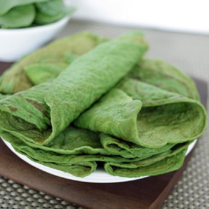 Place flour, milk, oil, egg, 1 egg white and 1/3 spinach in a blender or food processor. Blend 15 seconds. Refrigerate batter for 1/2 hour. Lightly grease a crepe pan and heat for 30 seconds. Pour in 3 tablespoons batter, rotating pan to spread batter evenly. Cook crepe until edges begin to brown. Loosen with spatula and flip over. Cook 10 seconds on the second side. Transfer to a large plate. Repeat with remaining batter. Crepes can be refrigerated or frozen at this point. Stack crepes with parchment paper before freezing.