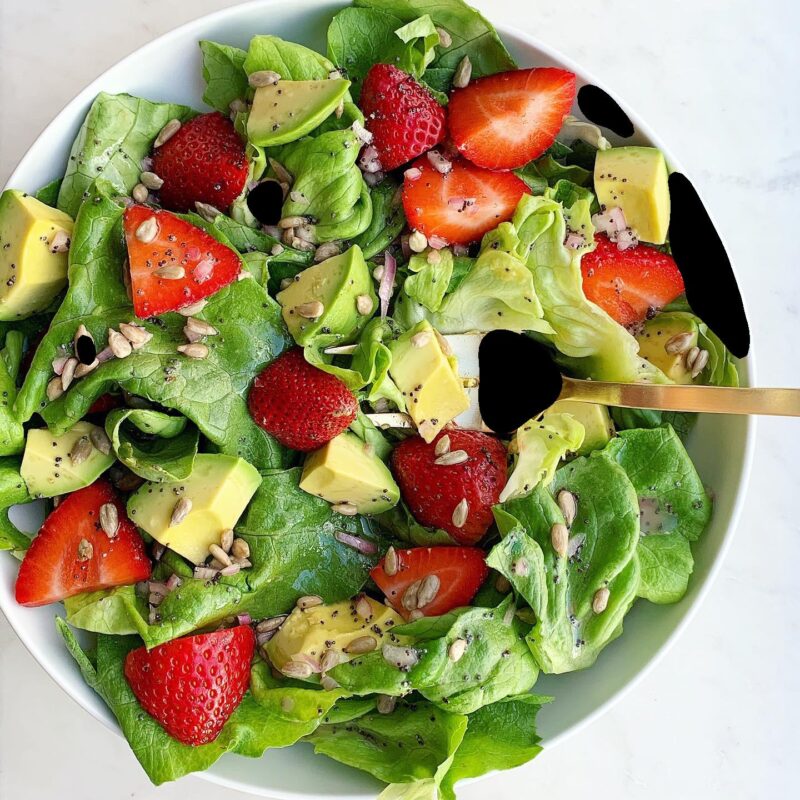 Combine lettuce, strawberries, and avocado.