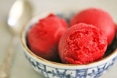 Don’t leave the peppercorns out of this recipe. As unusual as it sounds, they give the sorbet an added kick.