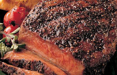 Rinse pepper steak and pat dry. Place the pepper steak in a non-reactive dish or a Ziploc bag. Do not marinate in a foil pan. Pour pineapple juice over the steaks and allow it to marinate for 1 to 2 Hours.