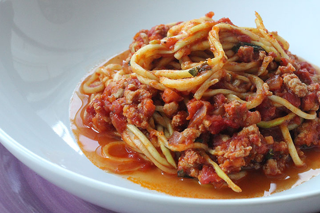 Add in the zucchini pasta and mix thoroughly to combine. Cook for about 2 Minutes or until zucchini softens and heats through. Divide among 4 bowls and serve.