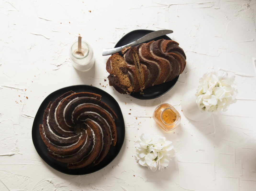 Preheat oven to 325°F and generously spray a Heritage Bundt pan with a flour and oil baking spray. Set aside.