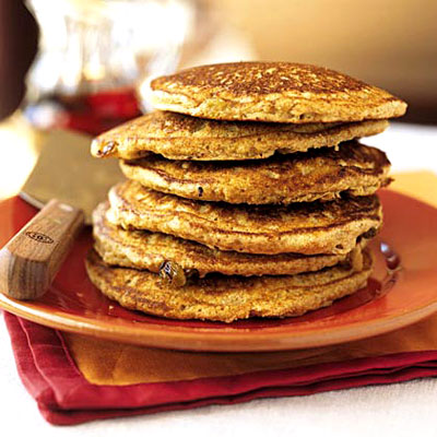 Heat a nonstick grill or skillet over medium heat; coat pan with an oil-dampened paper towel or spray lightly with oil. Pour about 1/4 cup batter per pancake onto griddle; Sprinkle with 2 teaspoons blueberries and 2 teaspoons nuts, if using.